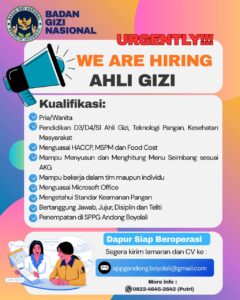 Deskripsi Lowongan Kerja Ahli Gizi di SPPG Andong Boyolali