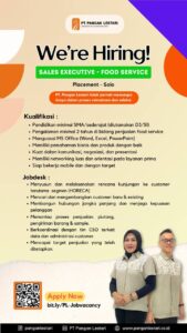 Deskripsi Lowongan Kerja Sales Executive Food Service di PT. Pangan Lestari