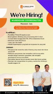 Deskripsi Lowongan Kerja Warehouse Coordinator di PT. Pangan Lestari